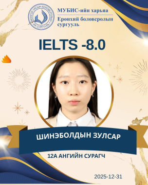 Сайхан мэдээ үргэлжилсээр ... Улсын Биологийн 36-р олимпиадаас 9-р ангийн төрөлд 8а ангийн сурагч Ц.Маргад-Эрдэнэ мөнгөн медаль, 9а ангийн сурагч Мөнх-Анар хүрэл медаль хүртлээ. Хос медаль хүртсэн 2 шавьдаа, шавь нараа амжилтттай бэлтгэсэн Х. Отгонцэцэг, Ж.Гүррагчаа багш нартаа болон Green biology- МХБ-ийн багш Г. Цэнд-Аюуш , П. Золжаргал, Г.Уранчимэг нартаа баяр хүргэе. Онцлох мэдээ